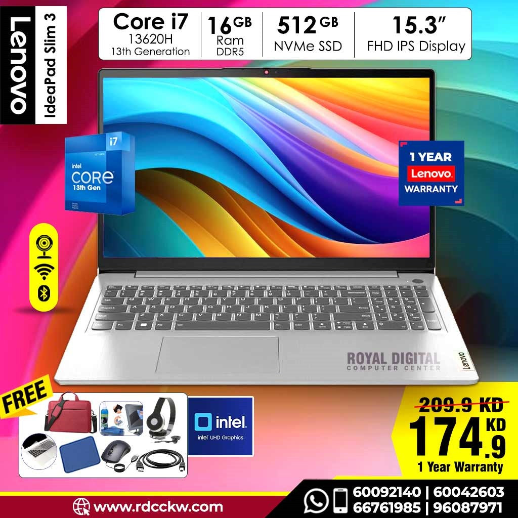 لينوفو ايديا باد i7 الجيل الثالث، 16 جيجابايت رام، 512 جيجابايت NVMe SSD، 15.6 بوصة FHD، Intel Graphics