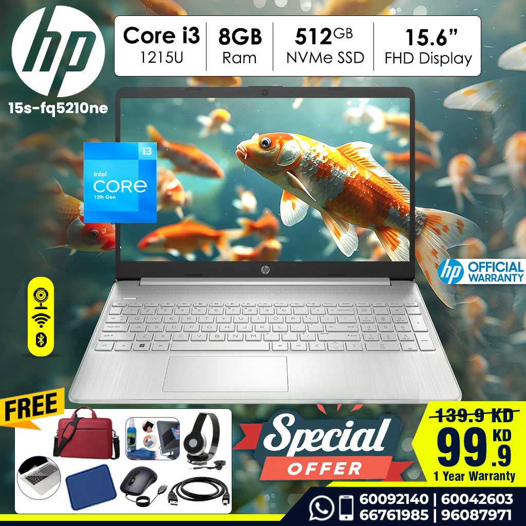 HP Laptop 15s-fq5210ne Intel Core i3- 1215u | 8GB Ram | 512 GB SSD | 15.6 FHD | Dos