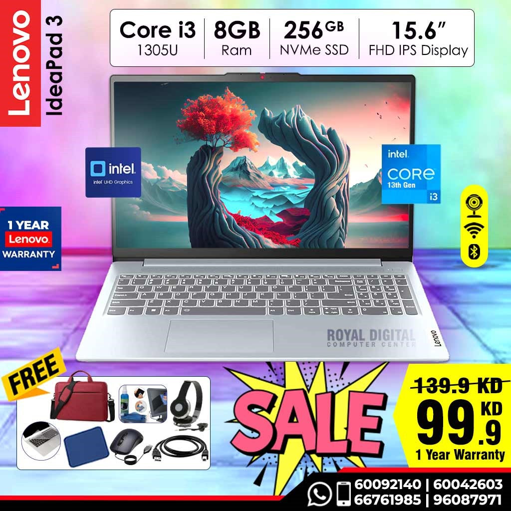 Lenovo IdeaPad Slim 3 Core i3 Processor 8GB Ram 256 GB NVMe SSD 15.6-inch Full HD Display